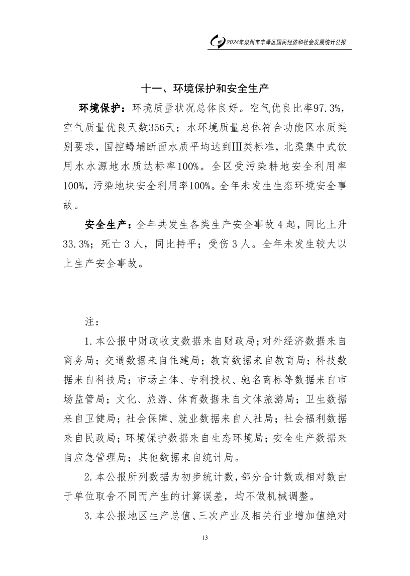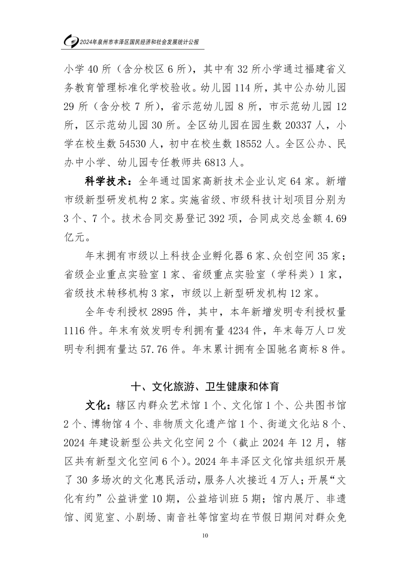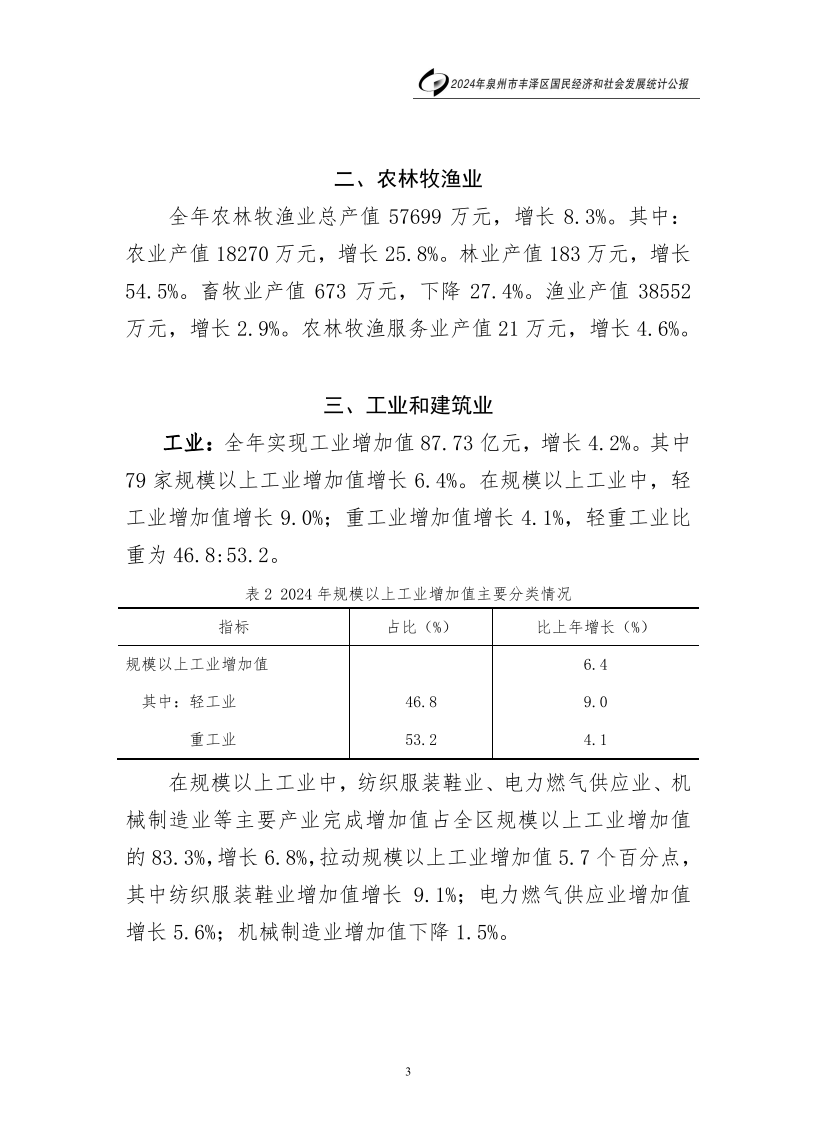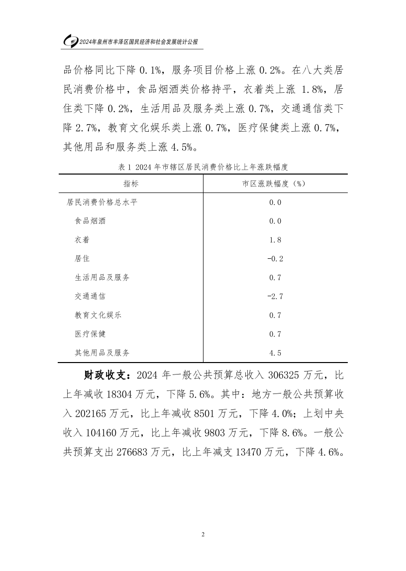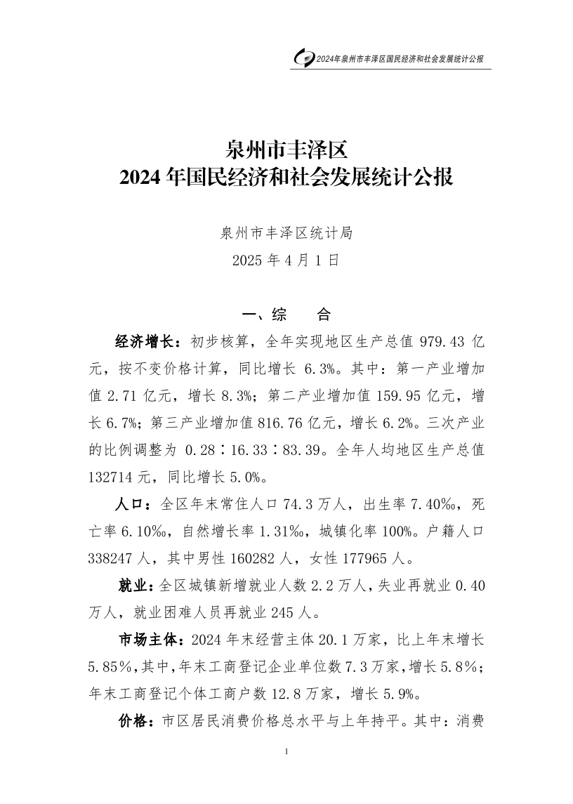 2024年泉州市豐澤區(qū)人民政府國民經(jīng)濟和社會發(fā)展統(tǒng)計公報(2025年更新)