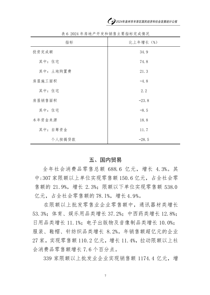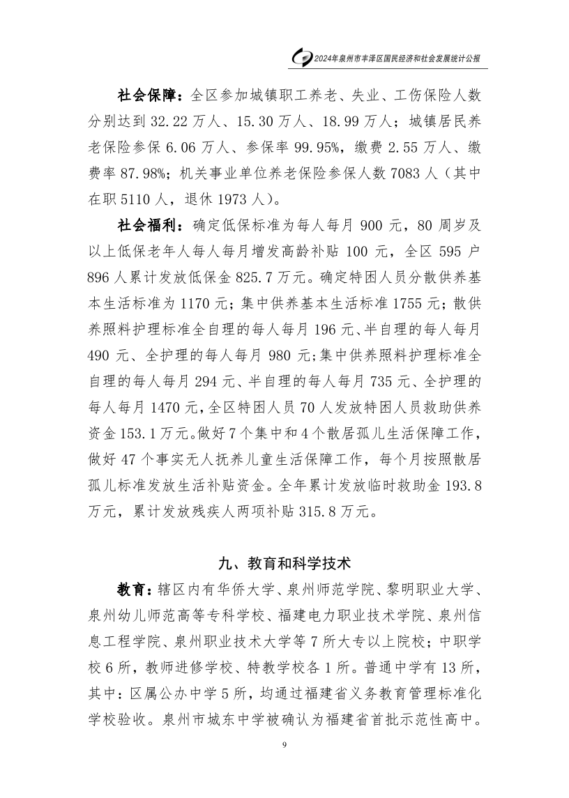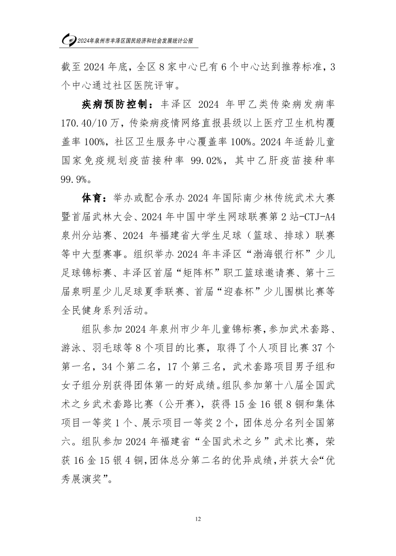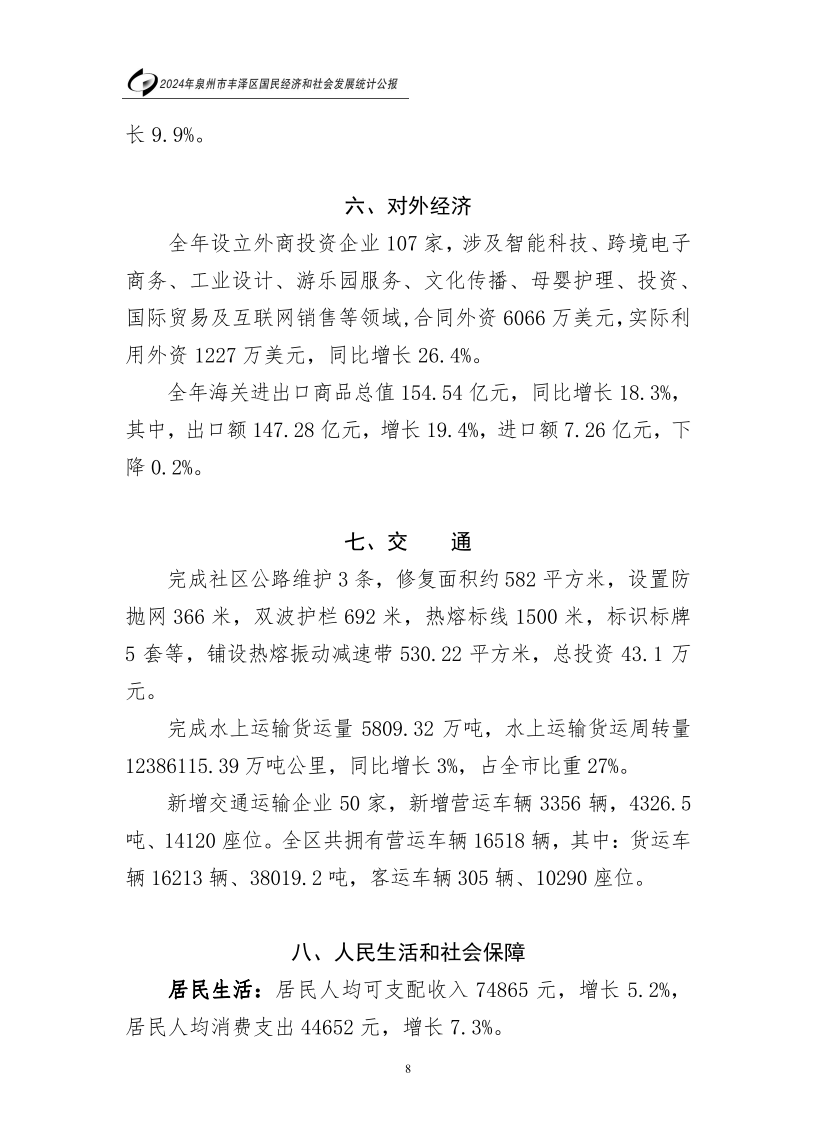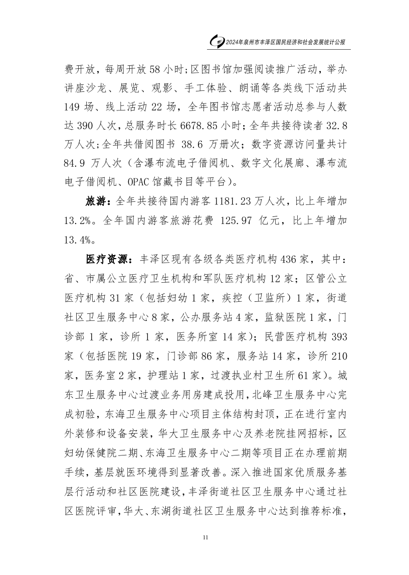 2024年泉州市豐澤區(qū)人民政府國民經(jīng)濟和社會發(fā)展統(tǒng)計公報(2025年更新)