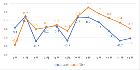 圖2??2024年全縣居民消費(fèi)價(jià)格月度漲跌幅度