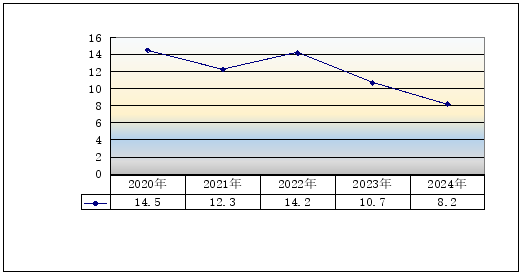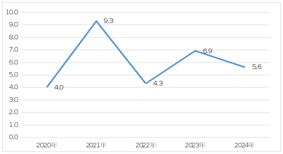圖6??2020-2024年全縣固定資產(chǎn)投資增長(zhǎng)速度