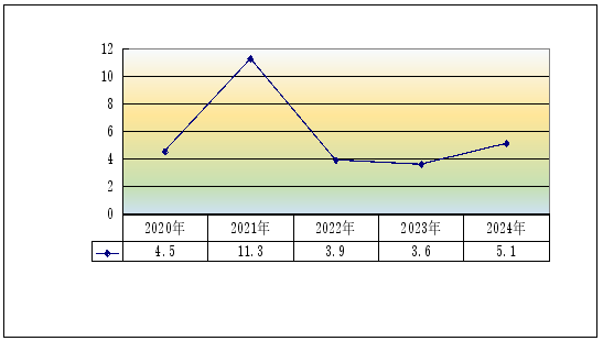 圖4??2020-2024年全縣工業(yè)增加值增長(zhǎng)速度