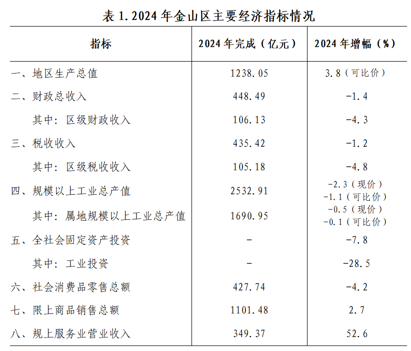2024年上海市金山區(qū)人民政府國民經濟和社會發(fā)展統(tǒng)計公報(2025年更新)