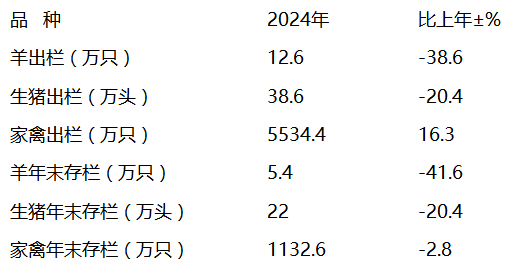 - 主要畜禽出欄、存欄情況如下: