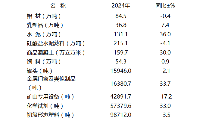 - 規(guī)模以上工業(yè)主要產(chǎn)品產(chǎn)量如下: