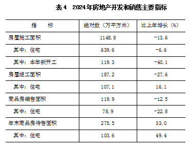 全區(qū)房屋施工面積1148.8萬平方米,比上年下降13.6%。其中,本年新開工面積119.3萬平方米,下降40.1%。全年房屋竣工面積187.2萬平方米,下降27.6%。