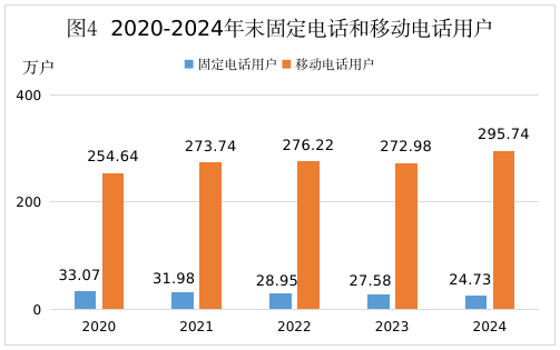 全年完成郵電業(yè)務(wù)總量39.82億元,比上年增長15.1%。其中,郵政業(yè)務(wù)總量11.50億元,增長23.5%;電信業(yè)務(wù)總量28.31億元,增長12.0%。年末電話總用戶320.47萬戶,比上年末增長6.6%;其中,固定電話用戶24.73萬戶,移動(dòng)電話用戶295.74萬戶。年末5G移動(dòng)電話用戶202.45萬戶,比上年末增加44萬戶;年末4G移動(dòng)電話用戶211.22萬戶,比上年末增加0.36萬戶。年末(固定)互聯(lián)網(wǎng)寬帶接入用戶95.46萬戶,比上年末增加2.55萬戶。年末移動(dòng)互聯(lián)網(wǎng)用戶270.11萬戶,增長5.7%。