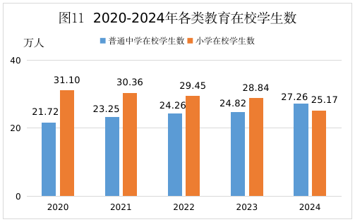 全市共有幼兒園534所,在園幼兒8.71萬人;學(xué)前教育幼兒毛入園率為98.93%,比上年提高0.22個(gè)百分點(diǎn);小學(xué)323所,普通中學(xué)202所,其中,初級中學(xué)110所,高級中學(xué)18所,完全中學(xué)12所,一貫制學(xué)校62所(九年一貫制學(xué)校56所,十二年一貫制學(xué)校6所);小學(xué)在校學(xué)生27.26萬人,學(xué)齡人口入學(xué)率達(dá)100%;初中在校學(xué)生16.11萬人,初中學(xué)齡人口入學(xué)率100%;高中在校學(xué)生9.06萬人,比上年增加0.52萬人,高中階段教育毛入學(xué)率97.67%,提高0.07個(gè)百分點(diǎn)。本市各類中等職業(yè)教育學(xué)校15所,在校生3.9萬人;技工學(xué)校3所,在校生1.05萬人。普通高等教育院校2所,在校生2.02萬人。