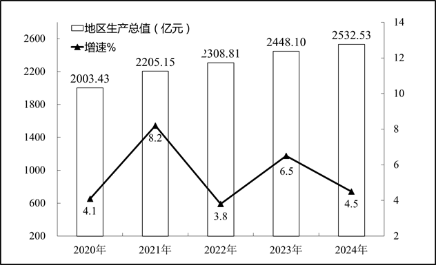 圖1??2020-2024年地區(qū)生產(chǎn)總值及其增長(zhǎng)速度2024年四川省樂(lè)山市人民政府國(guó)民經(jīng)濟(jì)和社會(huì)發(fā)展統(tǒng)計(jì)公報(bào)(2025年更新)