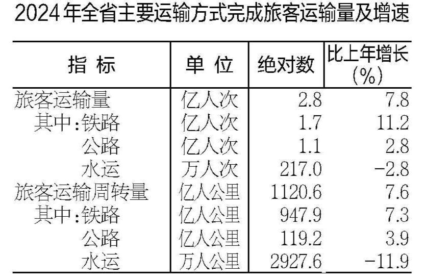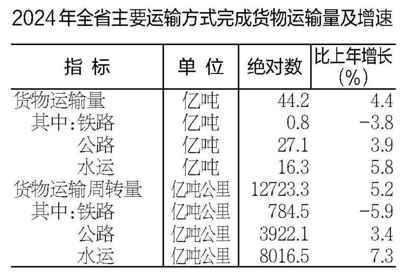 全年貨物運(yùn)輸量44.2億噸,比上年增長4.4%。貨物運(yùn)輸周轉(zhuǎn)量12723.3億噸公里,增長5.2%。港口貨物吞吐量6.9億噸,增長3.4%。旅客運(yùn)輸量2.8億人次,增長7.8%。旅客運(yùn)輸周轉(zhuǎn)量1120.6億人公里,增長7.6%。全省民航機(jī)場旅客吞吐量1591.5萬人次,增長6.9%,其中合肥新橋機(jī)場旅客吞吐量1248.1萬人次,增長11.7%。