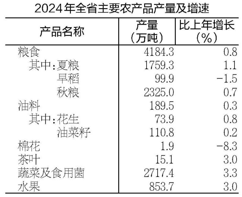 全年糧食種植面積11017.3萬畝,比上年增加15.6萬畝。油料種植面積998.1萬畝,增加32.9萬畝。全年糧食產(chǎn)量4184.3萬噸,比上年增產(chǎn)0.8%。其中,夏糧1759.3萬噸,增產(chǎn)1.1%;早稻99.9萬噸,減產(chǎn)1.5%;秋糧2325.0萬噸,增產(chǎn)0.7%。油料產(chǎn)量189.5萬噸,增產(chǎn)0.3%。