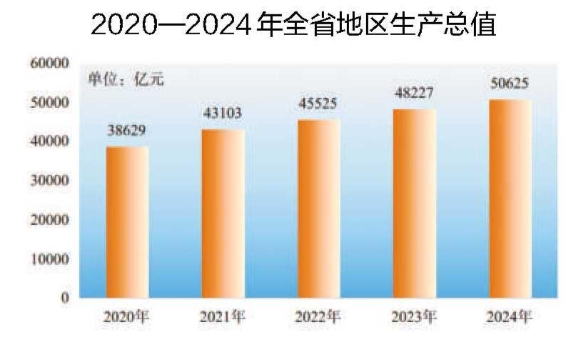 初步核算,全年全省地區(qū)生產(chǎn)總值[2]50625億元,比上年增長5.8%。其中,第一產(chǎn)業(yè)增加值3566億元,增長3.2%;第二產(chǎn)業(yè)增加值19607億元,增長7.4%;第三產(chǎn)業(yè)[3]增加值27452億元,增長4.9%。工業(yè)增加值14171億元,增長8.2%。三次產(chǎn)業(yè)結(jié)構(gòu)由上年的7.3∶38.8∶53.9調(diào)整為7.0∶38.7∶54.3。人均地區(qū)生產(chǎn)總值82694元(折合11612美元),比上年增長5.8%。全員勞動(dòng)生產(chǎn)率[4]為158203元/人,比上年增加7069元/人。