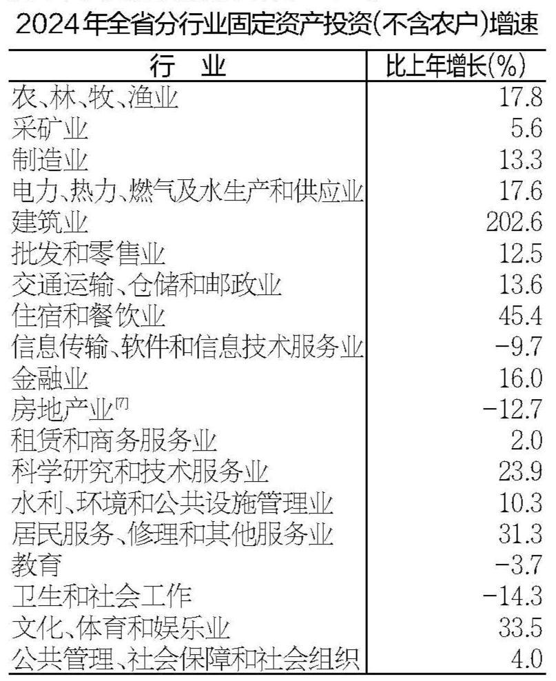 全年固定資產(chǎn)投資(不含農(nóng)戶)比上年增長4.7%,扣除房地產(chǎn)開發(fā)投資,固定資產(chǎn)投資增長11.2%。分產(chǎn)業(yè)看,第一產(chǎn)業(yè)投資增長20.4%,第二產(chǎn)業(yè)投資增長13.6%,第三產(chǎn)業(yè)投資下降1.4%。工業(yè)投資增長13.6%,其中工業(yè)技術(shù)改造投資增長20.5%?;A(chǔ)設(shè)施投資增長11.1%。高技術(shù)產(chǎn)業(yè)投資增長8.8%。民間投資增長1.7%,其中民間制造業(yè)投資增長11.7%。