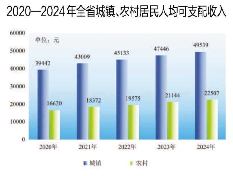 全年全省居民人均可支配收入36782元,比上年增長5.4%,扣除價(jià)格因素實(shí)際增長4.9%;人均消費(fèi)支出24996元,增長5.9%。恩格爾系數(shù)為33.7%。