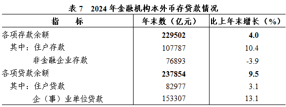 年末全部金融機構(gòu)本外幣各項存款余額229502億元,比上年末增長4.0%,其中人民幣存款余額增長4.0%。住戶本外幣存款余額107787億元,增長10.4%。全部金融機構(gòu)本外幣各項貸款余額237854億元,增長9.5%,其中人民幣貸款余額增長9.7%。年末主要農(nóng)村金融機構(gòu)(農(nóng)村信用社、農(nóng)村合作銀行、農(nóng)村商業(yè)銀行)人民幣貸款余額37815億元,比年初增加3768億元。