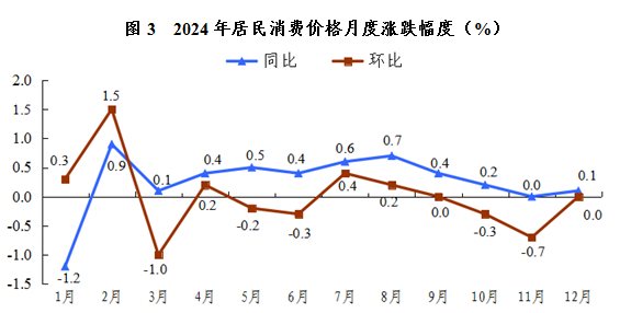 全年居民消費價格比上年上漲0.3%。其中,城市上漲0.2%,農(nóng)村上漲0.3%;消費品價格持平,服務(wù)價格上漲0.6%。工業(yè)生產(chǎn)者出廠價格下降2.2%,工業(yè)生產(chǎn)者購進價格下降2.4%。