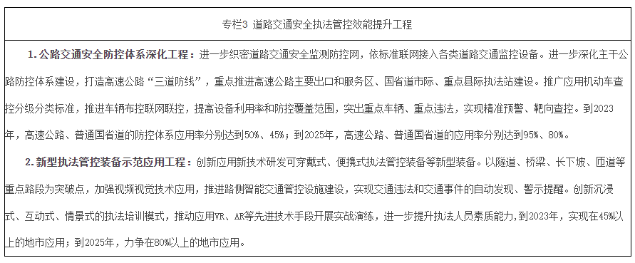 道路交通治理能力達到新水平。法治思維、系統(tǒng)觀念不斷融入道路交通安全治理,大數(shù)據(jù)、人工智能、5G等新技術(shù)充分應(yīng)用于道路交通安全管理工作,交通秩序明顯改善,風險防控、執(zhí)法管控與應(yīng)急救援等能力明顯提升。
