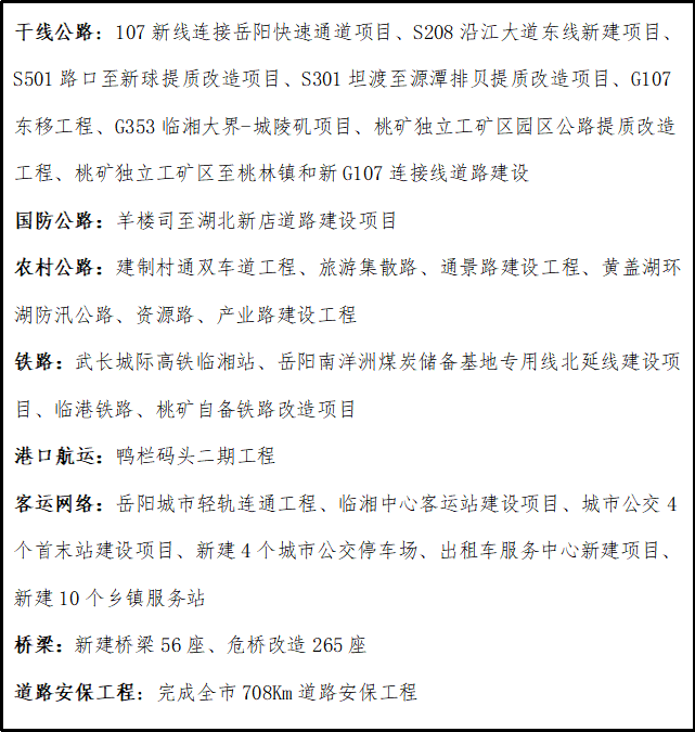 提高臨湘港吞吐量,擴建鴨欄碼頭3個3000噸級泊位,規(guī)劃建設碼頭鐵路專用線、通用機場,構建鐵公水空四位一體聯(lián)運體系。加快S208沿江大道和臨港鐵路建設進度,將一級公路延伸至鴨欄碼頭。適時啟動武長城際高鐵臨湘站、新G107線連接岳陽的快速通道建設。積極探索“新基建”在產業(yè)、民生、治理等各領域的應用。