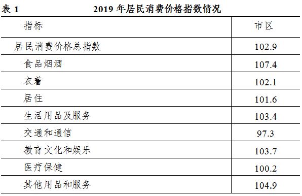 全年市區(qū)居民消費價格指數(shù)(CPI)為102.9,比上年提高0.6個百分點。其中服務項目價格指數(shù)為102.1,消費品價格指數(shù)為103.5。