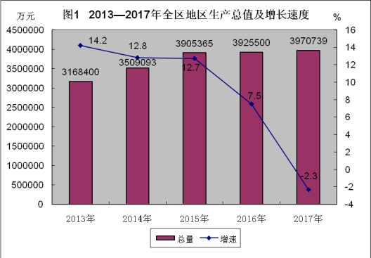2017年,全區(qū)完成工業(yè)總產(chǎn)值96.58億元,同比下降4.4%;實現(xiàn)增加值98.44億元,同比下降1.9%。