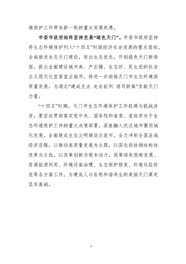 《湖北天門(mén)市生態(tài)環(huán)境保護(hù)十四五”規(guī)劃》