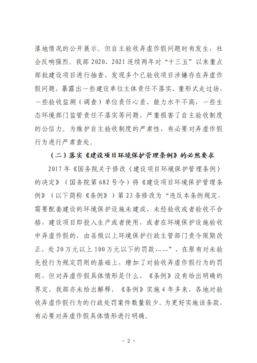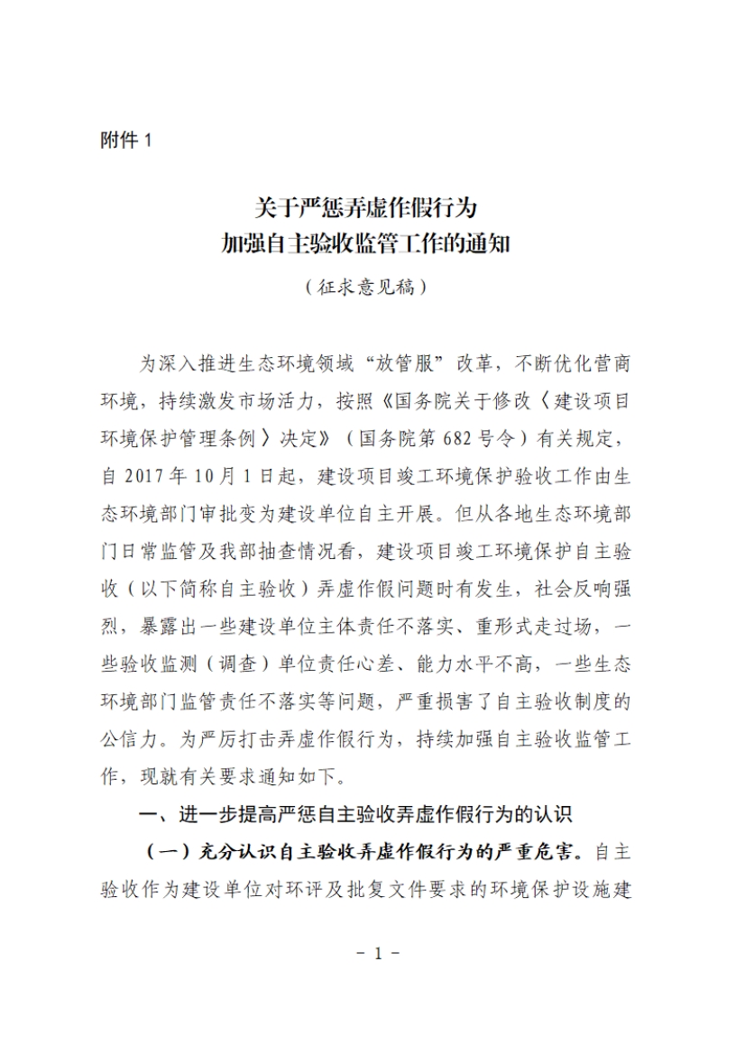 《環(huán)境部<關于嚴懲弄虛作假行為加強自主驗收監(jiān)管工作>的通知(征求意見稿)》