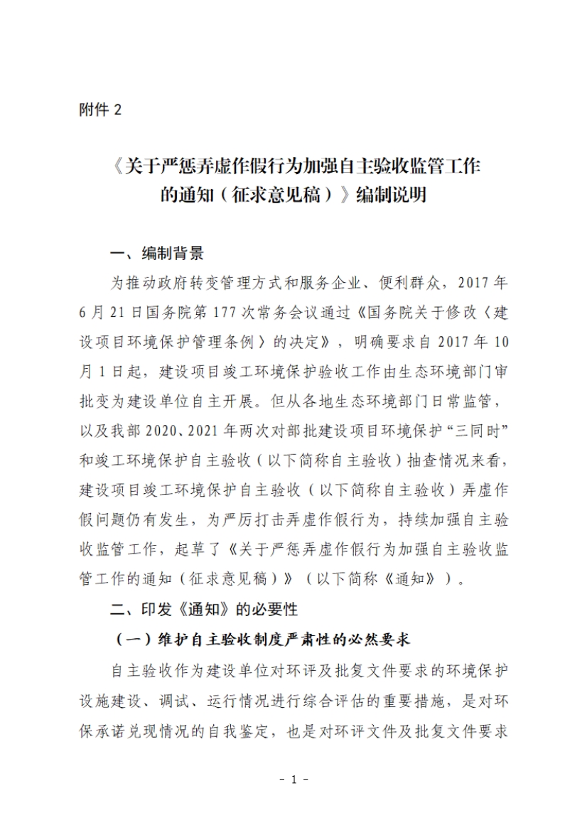傳 真:(010)65646289《環(huán)境部<關于嚴懲弄虛作假行為加強自主驗收監(jiān)管工作>的通知(征求意見稿)》