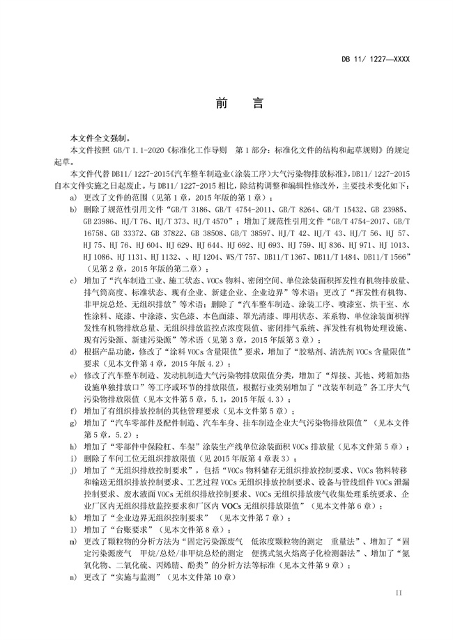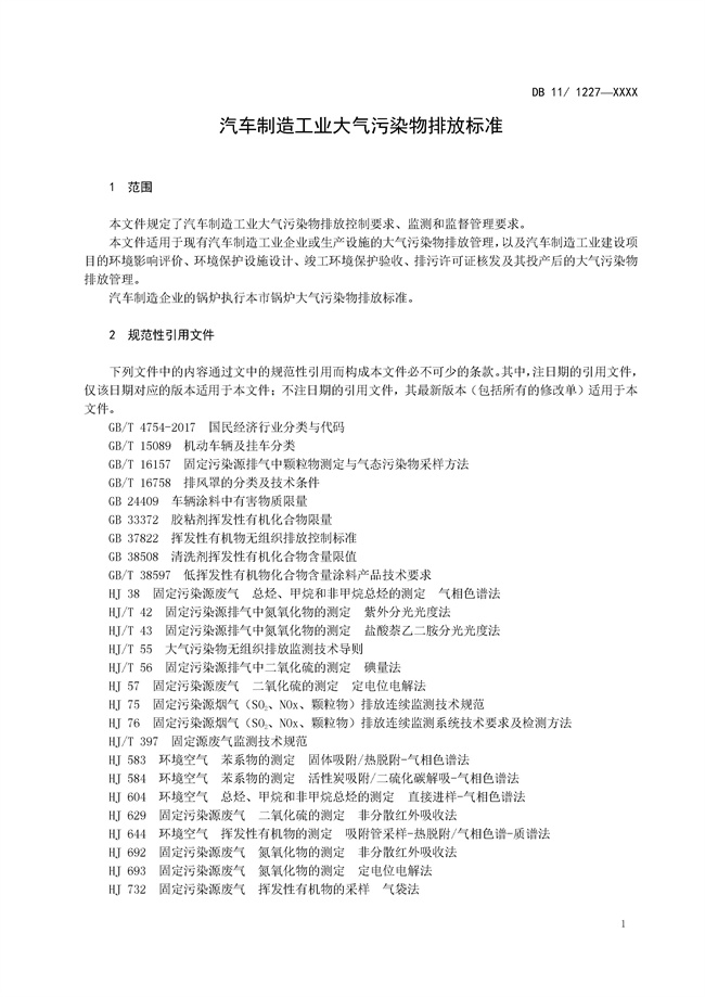《北京市<汽車制造工業(yè)大氣污染物排放標準 DB11/1227-202X>(征求意見稿)》