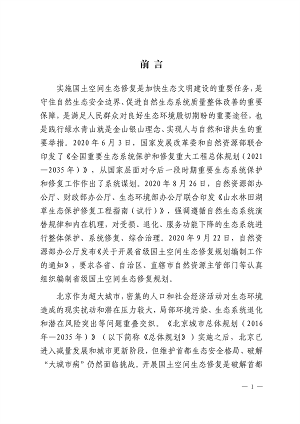 《北京市國土空間生態(tài)修復(fù)規(guī)劃(2021年-2035年)》