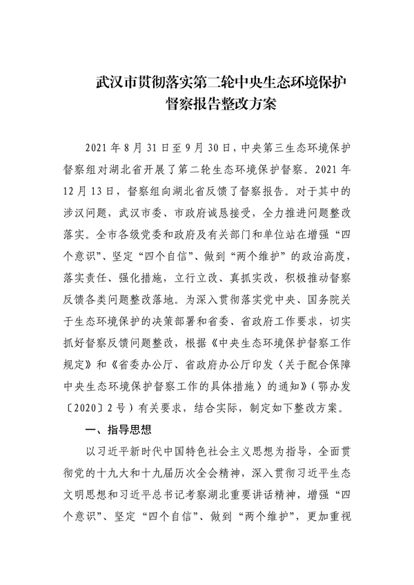 《武漢市公開第二輪中央生態(tài)環(huán)境保護(hù)督察整改方案》