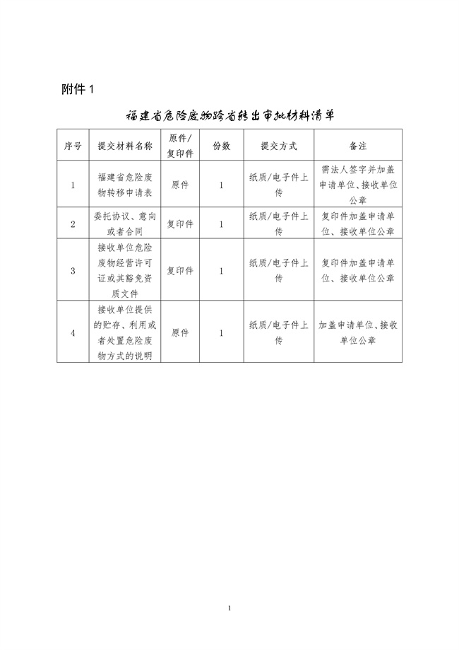 附件:1.福建省危險廢物跨省轉(zhuǎn)出審批材料清單