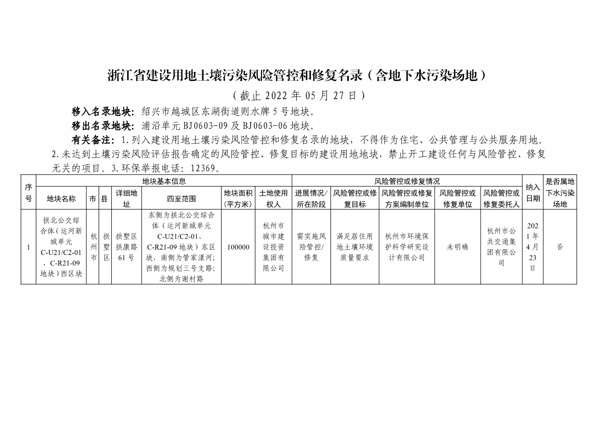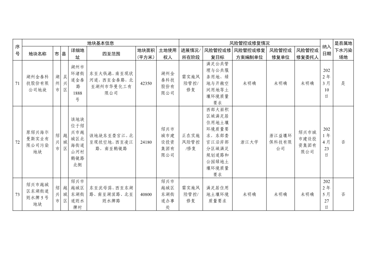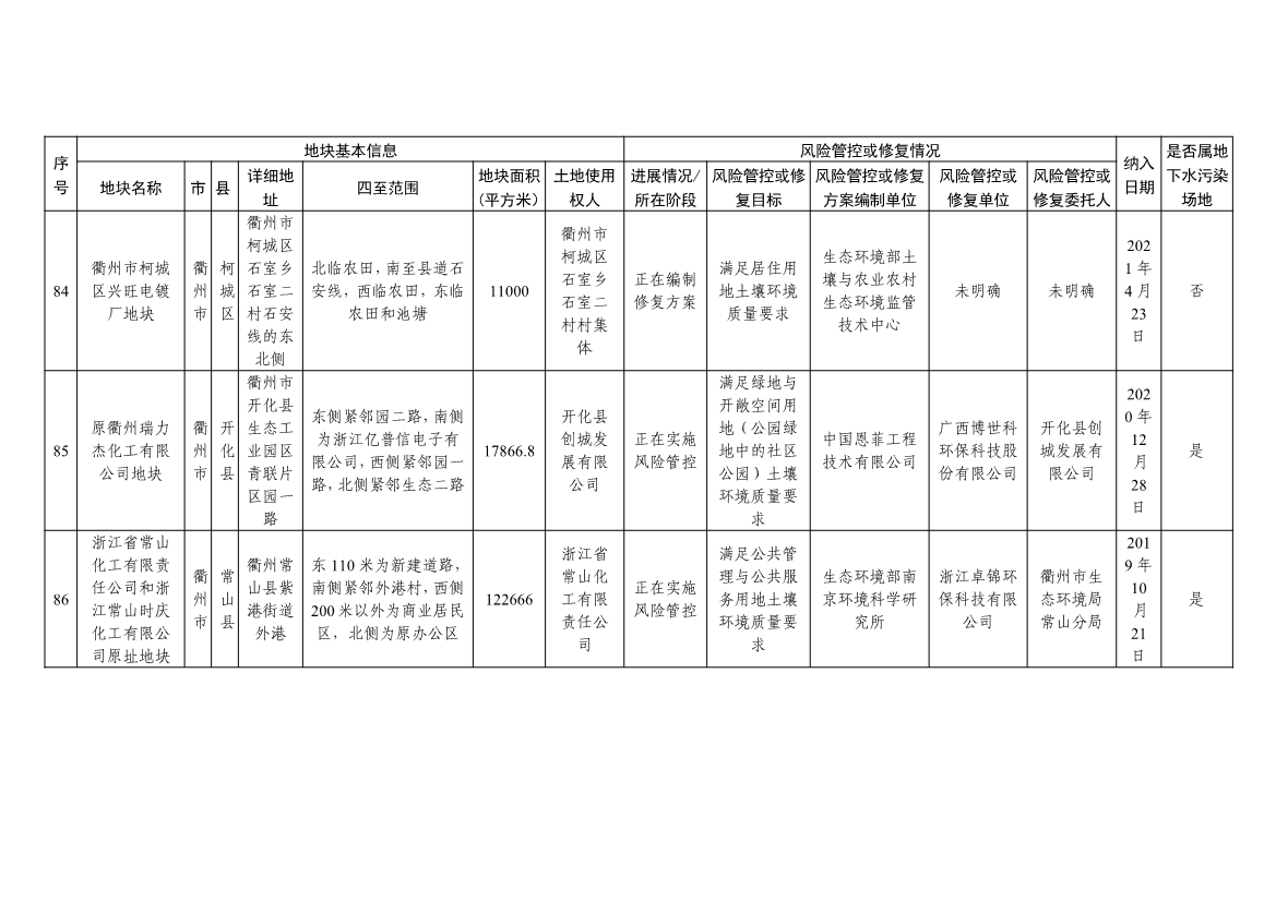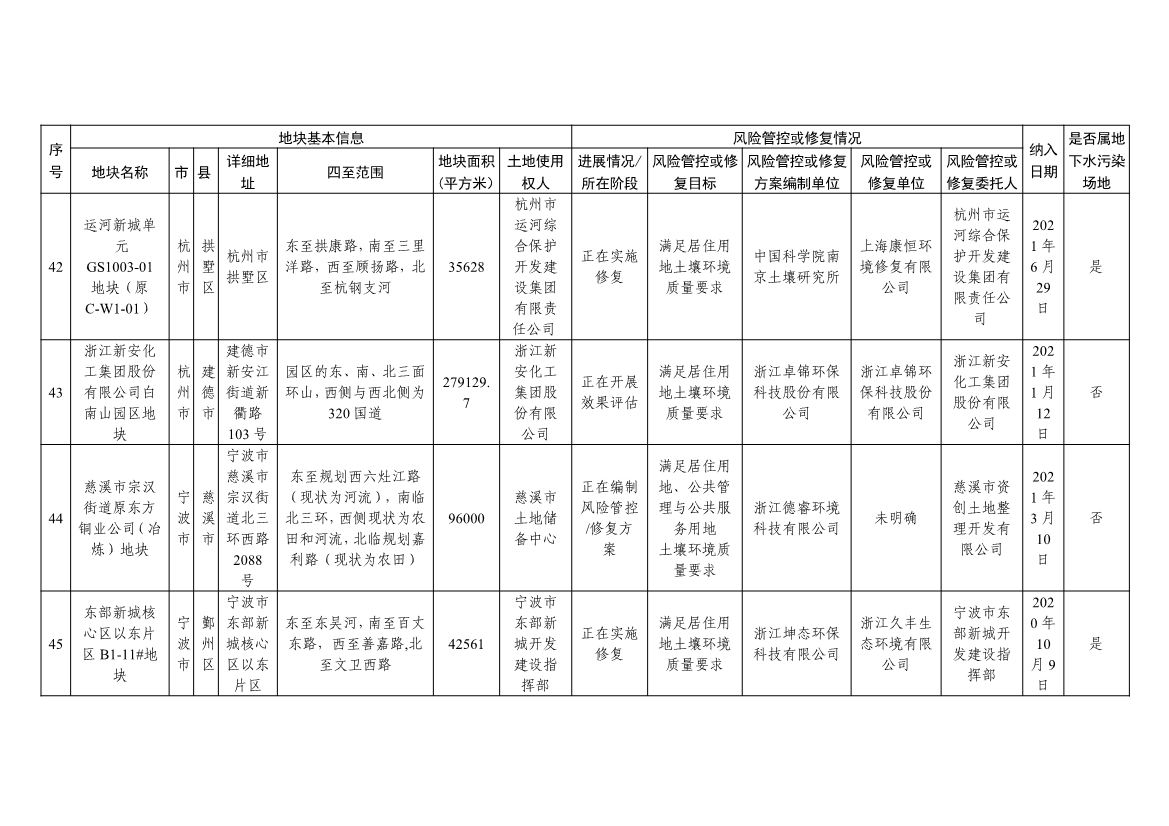 《浙江省建設(shè)用地土壤污染風(fēng)險管控和修復(fù)名錄與移出清單(含地下水污染場地)》