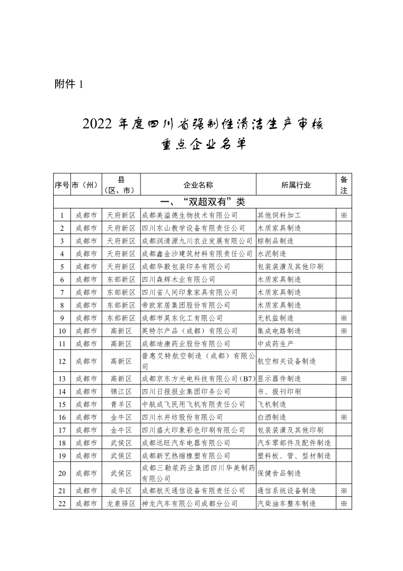 四川省生態(tài)環(huán)境廳 四川省發(fā)展和改革委員會關(guān)于公布2022年度強制性清潔生產(chǎn)審核重點企業(yè)名單的通知大牛工程師