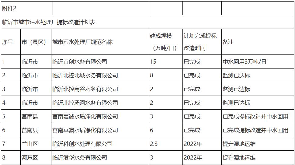 2. 臨沂市城市污水處理廠提標改造計劃表資料共享_縣域經濟_模版下載