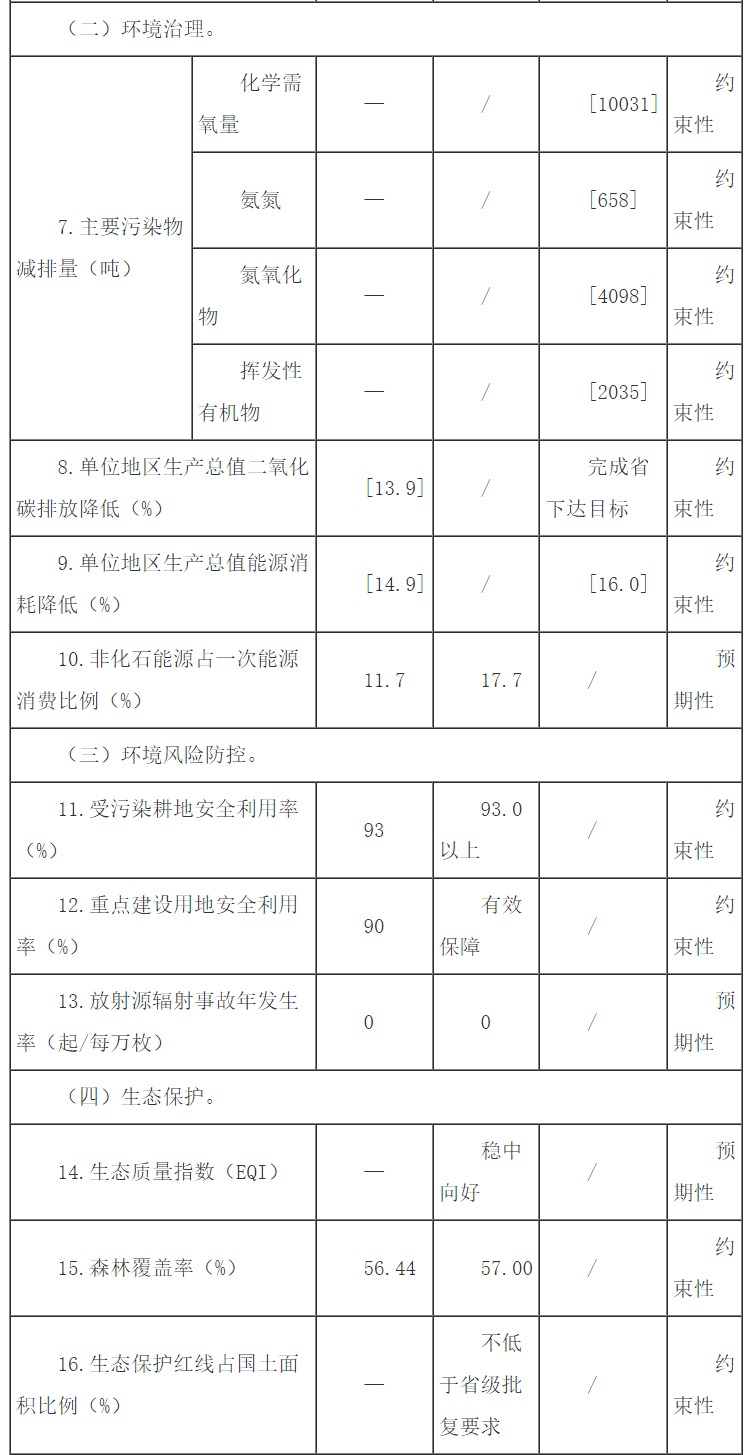 “十四五”期間,全市生態(tài)文明建設(shè)取得更大進(jìn)步,生態(tài)環(huán)境保護(hù)主要目標(biāo)是: