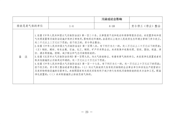 4.環(huán)境違法行為造成跨行政區(qū)域環(huán)境污染的;《北京市生態(tài)環(huán)境行政處罰裁量基準(zhǔn)(2022修訂版)征求意見稿》
