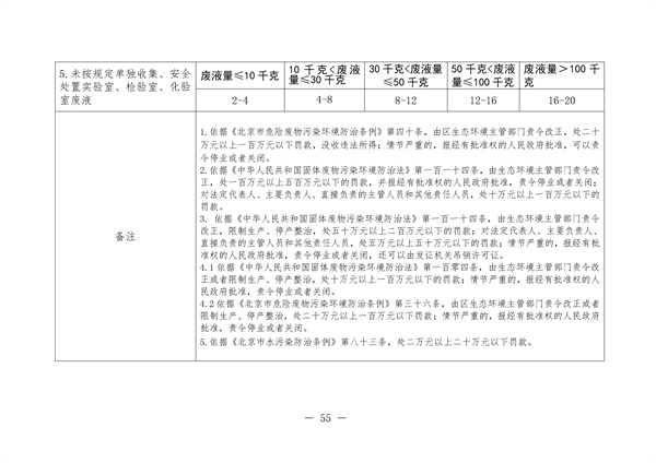 2.本基準(zhǔn)列舉了對(duì)本市常見環(huán)境違法行為的處罰裁量權(quán),未列入基準(zhǔn)的環(huán)境違法行為,參照已經(jīng)規(guī)范的裁量權(quán)的方法,通過(guò)橫向比較進(jìn)行裁量。《北京市生態(tài)環(huán)境行政處罰裁量基準(zhǔn)(2022修訂版)征求意見稿》