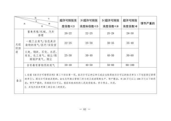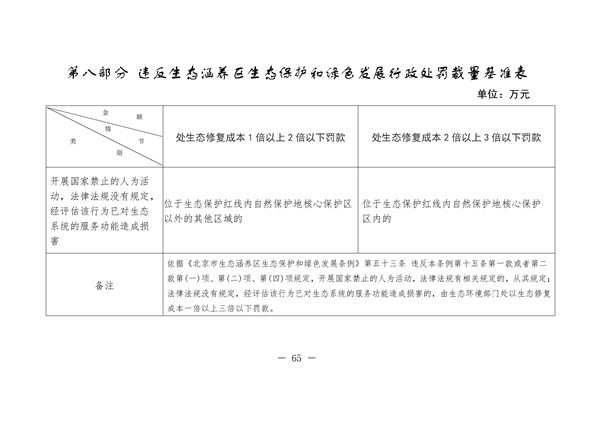 三、行政處罰裁量權(quán)基準(zhǔn)表《北京市生態(tài)環(huán)境行政處罰裁量基準(zhǔn)(2022修訂版)征求意見稿》