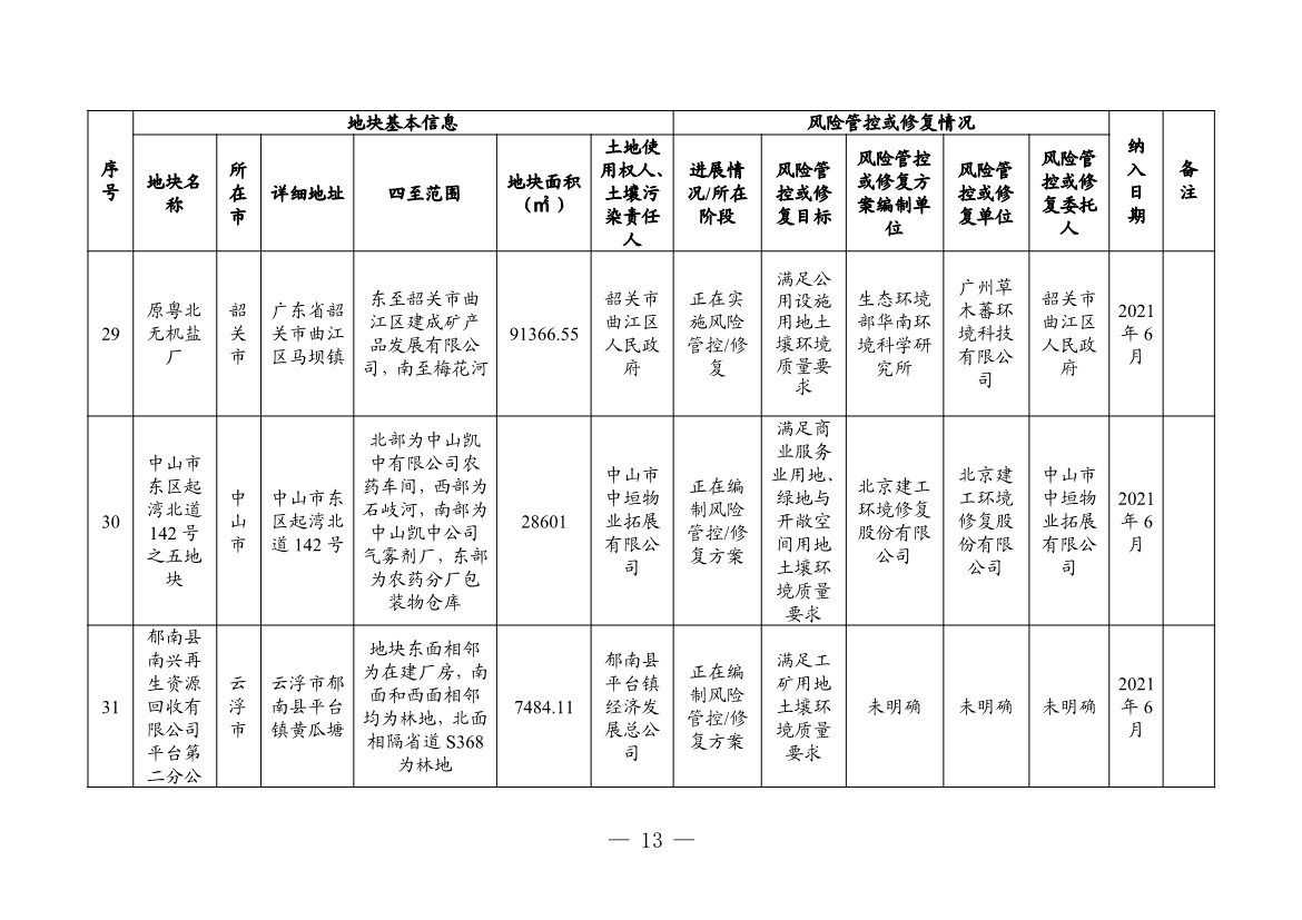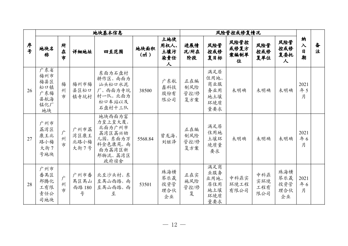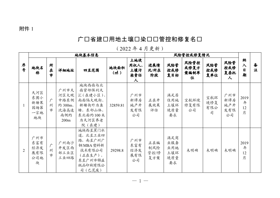 附件:1. 廣東省建設(shè)用地土壤污染風(fēng)險(xiǎn)管控和修復(fù)名錄(2022年4月更新)