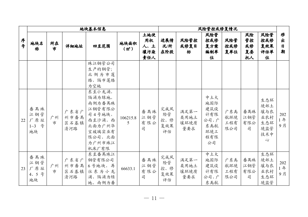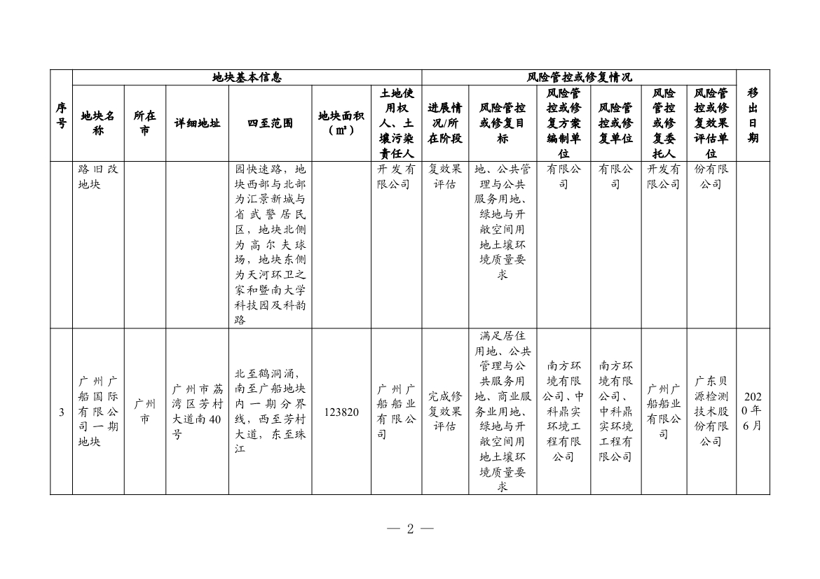 2. 廣東省建設(shè)用地土壤污染風(fēng)險(xiǎn)管控和修復(fù)名錄移出清單(2022年4月更新)