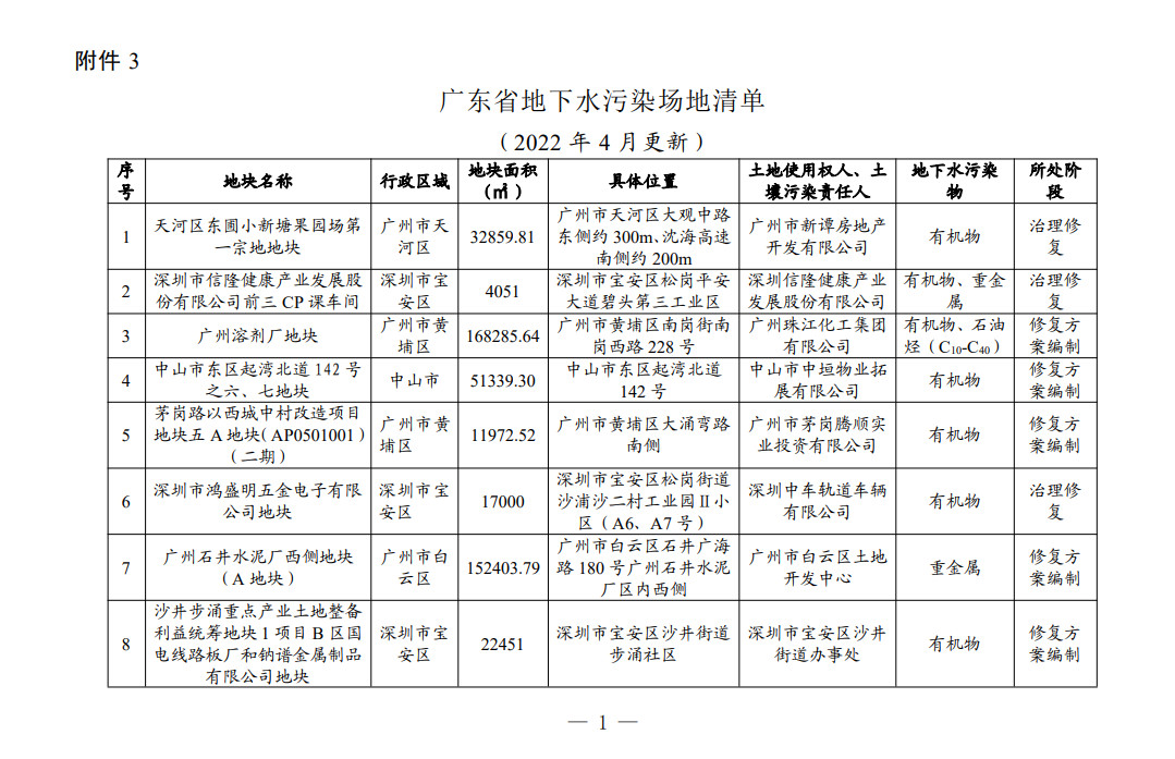 3. 廣東省地下水污染場(chǎng)地清單(2022年4月更新)