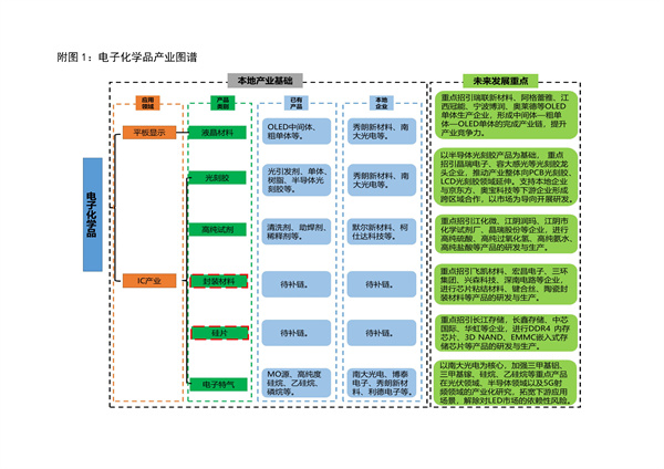 以全椒化工園區(qū)為重點,圍繞安徽省和長三角地區(qū)集成電路、平面顯示器、印制電路板、新能源電池等重點領(lǐng)域,提升電子化學(xué)品產(chǎn)業(yè)基礎(chǔ),發(fā)揮龍頭企業(yè)引領(lǐng)、帶動作用,聚焦薄弱環(huán)節(jié)開展產(chǎn)業(yè)鏈協(xié)同創(chuàng)新,壯大發(fā)展“基礎(chǔ)化工原料——光刻膠、高純超凈試劑、特種氣體”產(chǎn)業(yè)鏈,積極拓展電子化學(xué)品產(chǎn)品體系,培育發(fā)展半導(dǎo)體封裝材料,液晶材料、偏光片、彩色濾光片等新型顯示材料,以及新能源電池用高端新型材料,打造優(yōu)勢互補、分工協(xié)作、融合發(fā)展新格局,培育形成一批技術(shù)領(lǐng)先、具有區(qū)域競爭力的百億級產(chǎn)業(yè)群。《滁州市“十四五”新型化工產(chǎn)業(yè)發(fā)展規(guī)劃(征求意見稿)》