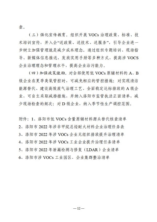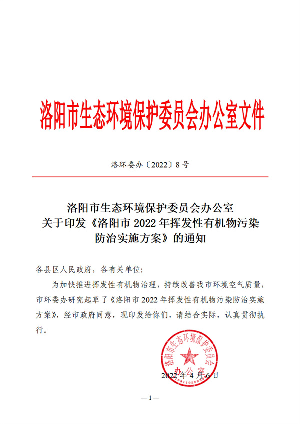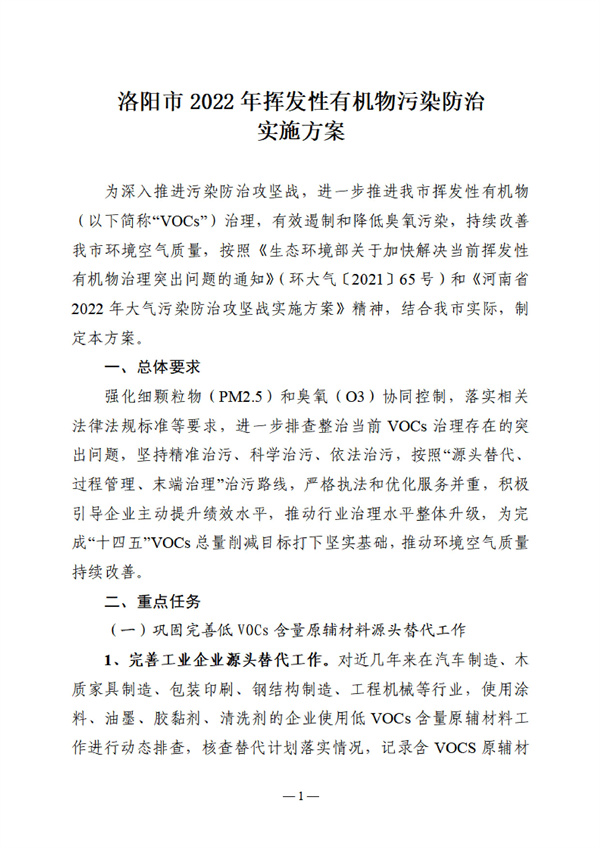 《洛陽市2022年揮發(fā)性有機物污染防治實施方案》(洛環(huán)委辦【2022】8號)