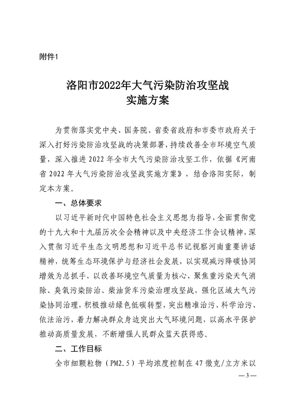 《洛陽市2022年大氣污染防治攻堅戰(zhàn)實施方案》