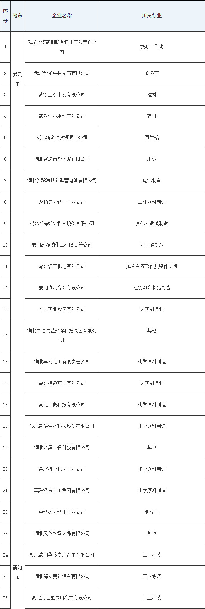 《湖北省 2022年度強(qiáng)制性清潔生產(chǎn)審核重點(diǎn)企業(yè)名單》
