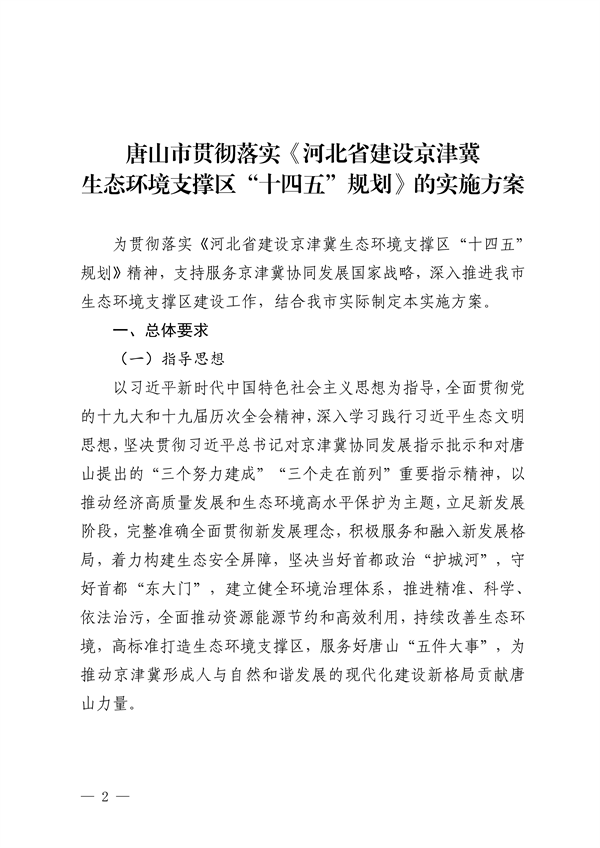 《唐山市貫徹落實(shí)河北省建設(shè)京津冀生態(tài)環(huán)境支撐區(qū)“十四五”規(guī)劃的實(shí)施方案 》(唐政辦字〔2022〕66號(hào))