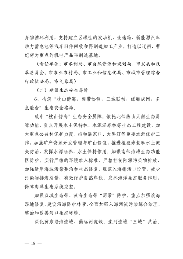 唐山市貫徹落實(shí)河北省建設(shè)京津冀生態(tài)環(huán)境支撐區(qū)“十四五”規(guī)劃的實(shí)施方案