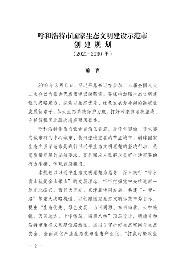 《呼和浩特市國(guó)家生態(tài)文明建設(shè)示范市創(chuàng)建規(guī)劃(2021-2030年)》