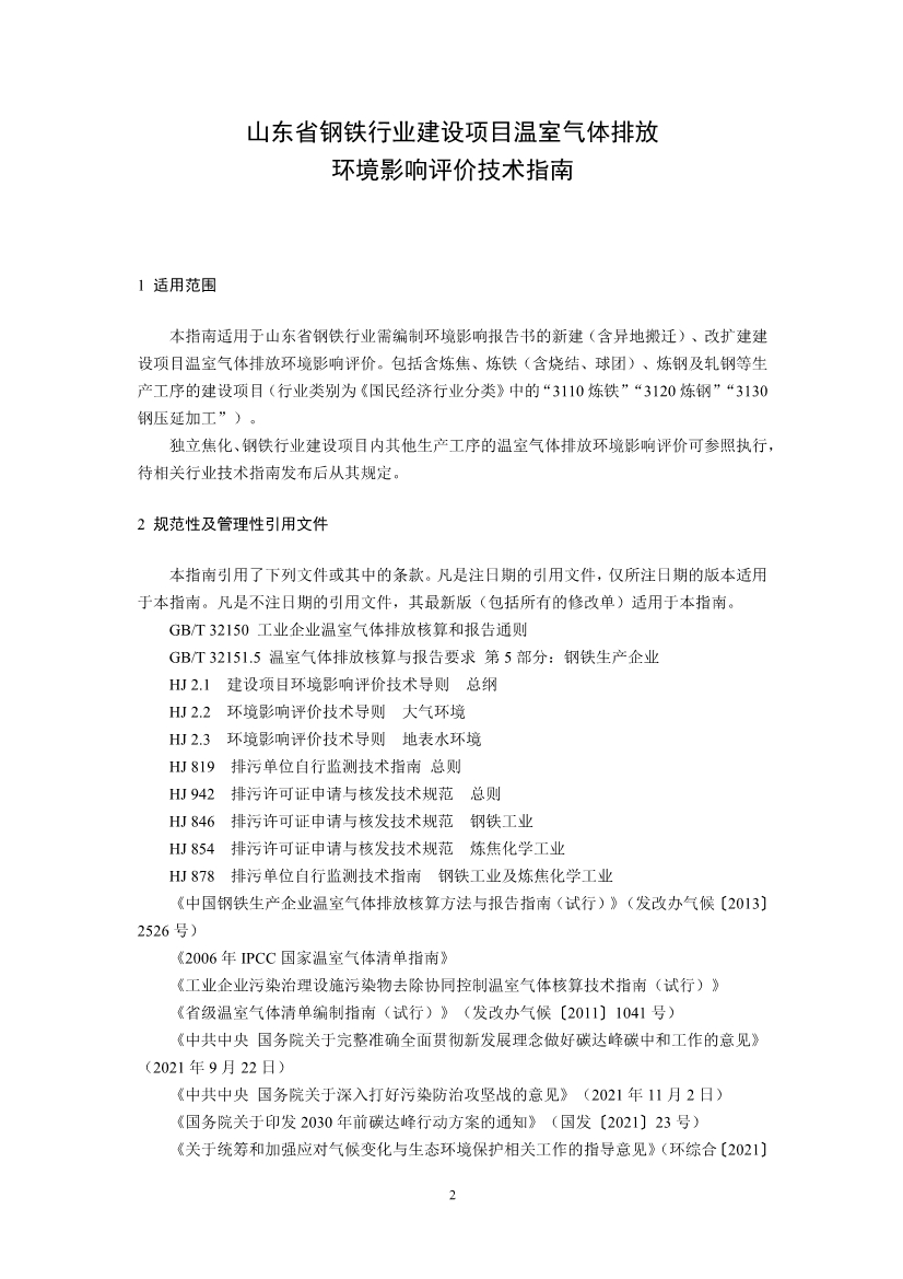 《山東省鋼鐵行業(yè)建設(shè)項(xiàng)目溫室氣體排放環(huán)境影響評價(jià)技術(shù)指南(試行)》(魯環(huán)發(fā)〔2022〕4號)