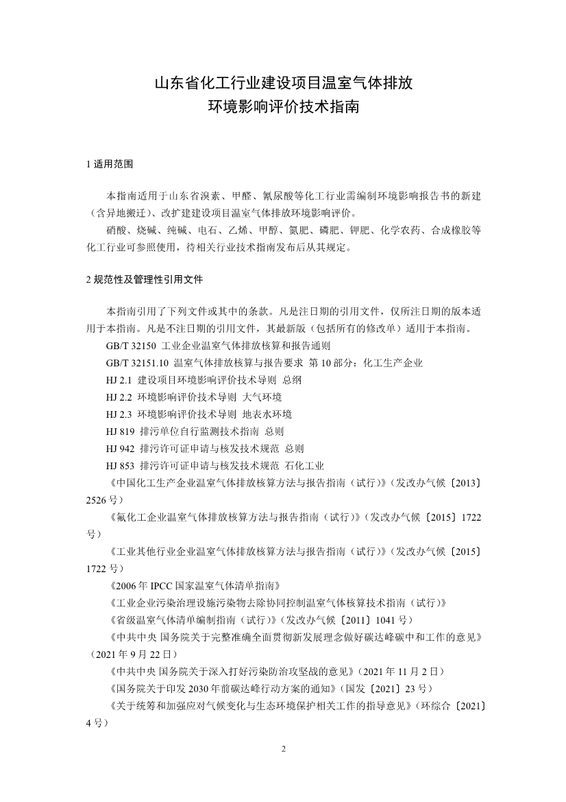 《山東省化工行業(yè)建設(shè)項目溫室氣體排放環(huán)境影響評價技術(shù)指南(試行)》(魯環(huán)發(fā)〔2022〕4號)