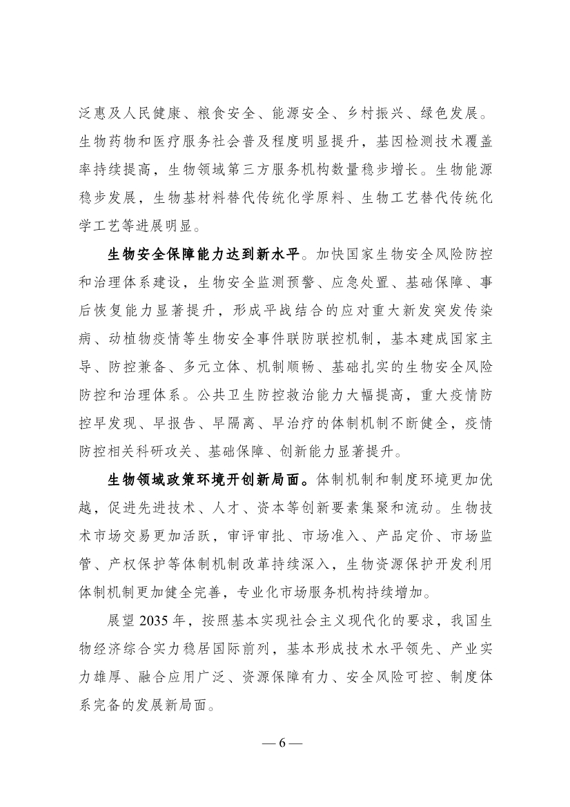 日前,國家發(fā)展改革委關于印發(fā)《“十四五”生物經濟發(fā)展規(guī)劃》的通知,展望 2035 年,按照基本實現(xiàn)社會主義現(xiàn)代化的要求,我國生物經濟綜合實力穩(wěn)居國際前列,基本形成技術水平領先、產業(yè)實 力雄厚、融合應用廣泛、資源保障有力、安全風險可控、制度體系完備的發(fā)展新局面。